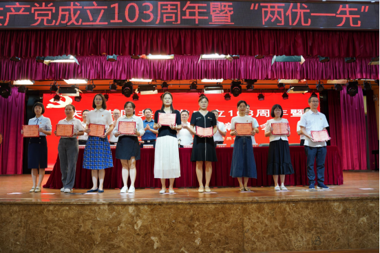 为深入学习贯彻习近平新时代中国特色社会主义思想,表彰近三年在党建工作和学院建设发展中涌现出的优秀共产党员、优秀党务工作者和先进基层党组织,6月28日,学院召开庆祝中国共产党成立103周年暨“两优一先”表彰大会。学院党委书记廖伏树,党委副书记、院长黄敬前,党委副书记陈金通,党委委员、副院长花文苍、沈永希、张庆武,党委委员、纪委书记郭根才,党委委员、慈山分院院长梁松刚出席,大会由黄敬前院长主持。