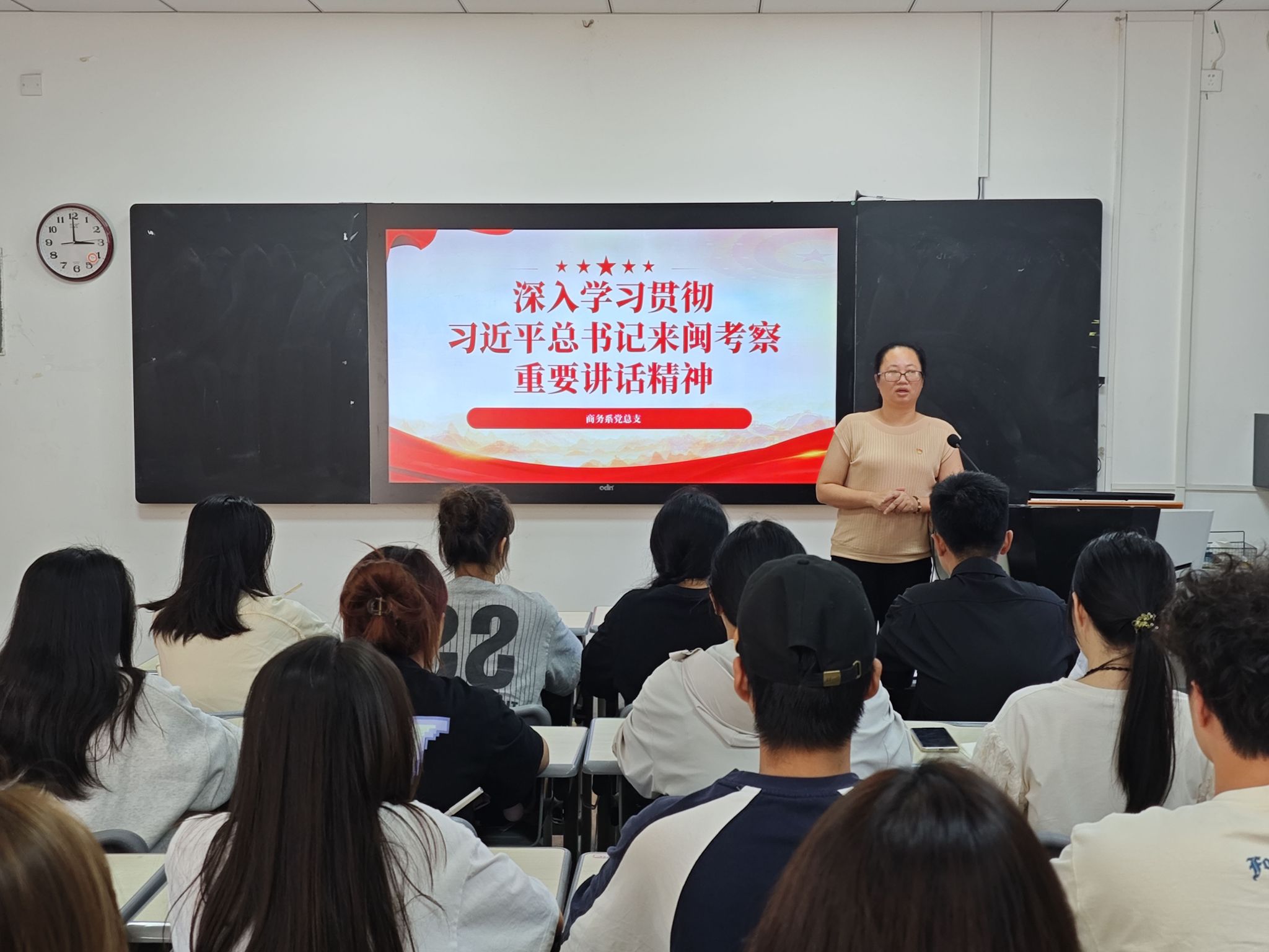 商务系党总支副书记蔡丹丹以“深入学习贯彻习近平总书记来闽考察的重要讲话精神”为题讲授党课。她强调,入党积极分子需将习近平总书记重要讲话精神融入生活工作,深刻理解党的性质、宗旨、纲领等基础理论,端正入党动机,坚定共产主义信仰。